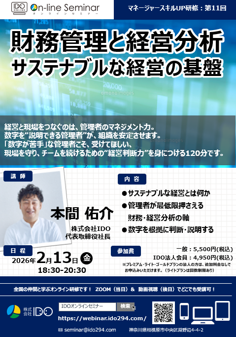 「数字が苦手」な管理者こそ、受けてほしい、現場を守り、チームを続けるための“経営判断力”を身につける120分です。